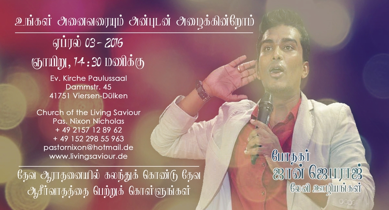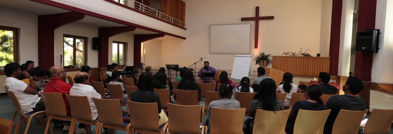 In den Räumlichkeiten des Paulussaals fand der Ostersonntagsgottesdienst um 14:30 Uhr statt. Mit dabei waren auch die Geschwister der Tochtergemeinde Mönchengladbach und Kevelaer. Jesus zu preisen und ganz besonders an diesem Tag seine Auferstehung zu feiern war sehr schön und familiär. Die Predigt übernahm Gemeindepastor Nixon Nicholas. Die Kinder und Jugendlichen haben ein Lied vorgetragen. Während der Predigt in der Sonntagsschule durften die Kinder die Ostereier suchen, die sie zuvor in der Woche in der Sonntagsschule bemalt hatten. Nach dem Gottesdienst gab es noch tamilische snacks. Wir danken Gott für den Segen an diesem besonderen Tag. [Sonntag, 16.April 2017]