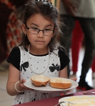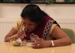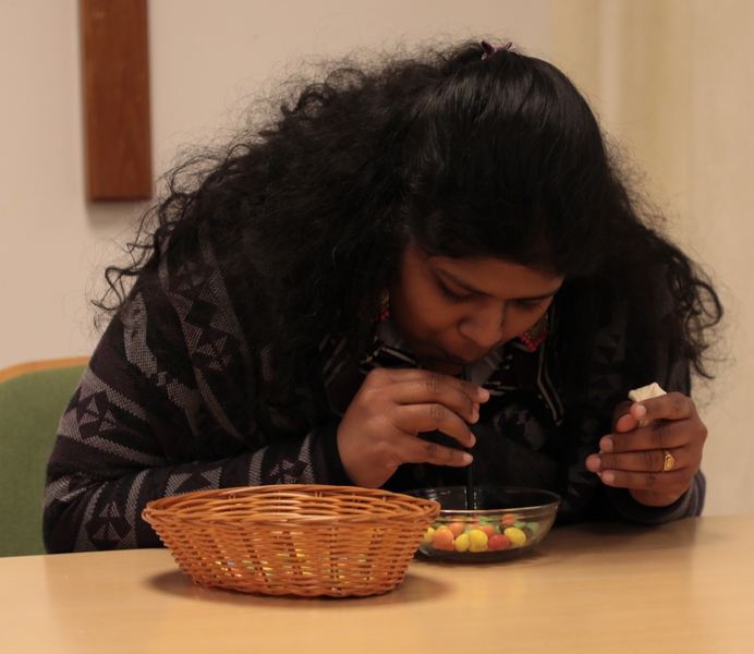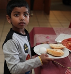 Das Jahr neigt sich dem Ende zu und Weihnachten steht bald vor der Tür und daher durften die Kinder zum Jahresabschluss während der Predigt mit den Sonntagsschullehrern Weihnachtsgebäck backen. Sonntagsschullehrerin Aaraniya hatte zuvor alles hervorragend organisiert gehabt, so dass alles reibungslos verlief. Es war den Kindern anzusehen, das sie beim backen sehr viel Spaß hatten. Die Plätzchen wurden künstlerisch zu dem verfeinert um es noch geschmackhafter zu machen. Eine sehr gelungen Aktion. [Sonntag, 03.Dezember 2017]