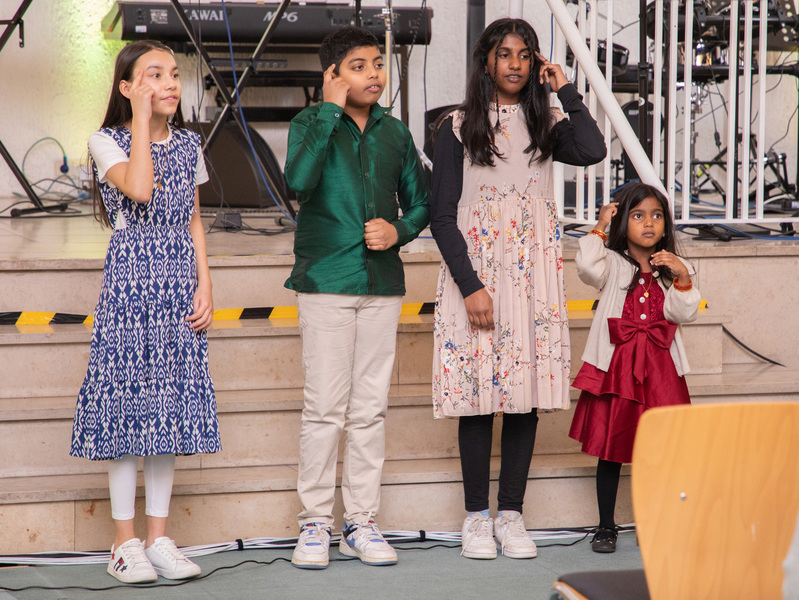 Nach dem Weihnachtsgottesdienst gab es ein kleines Programm von den Kindern und Erwachsenen aus der Muttergemeinde. Tänze, Gruppenlieder, Einzellieder und zuletzt noch ein Theaterstück. Alles in allem wurde der Erste Weihnachtstag mit einem gemeinsamen Abendessen beendet. [Montag, 25.Dezember 2017]
